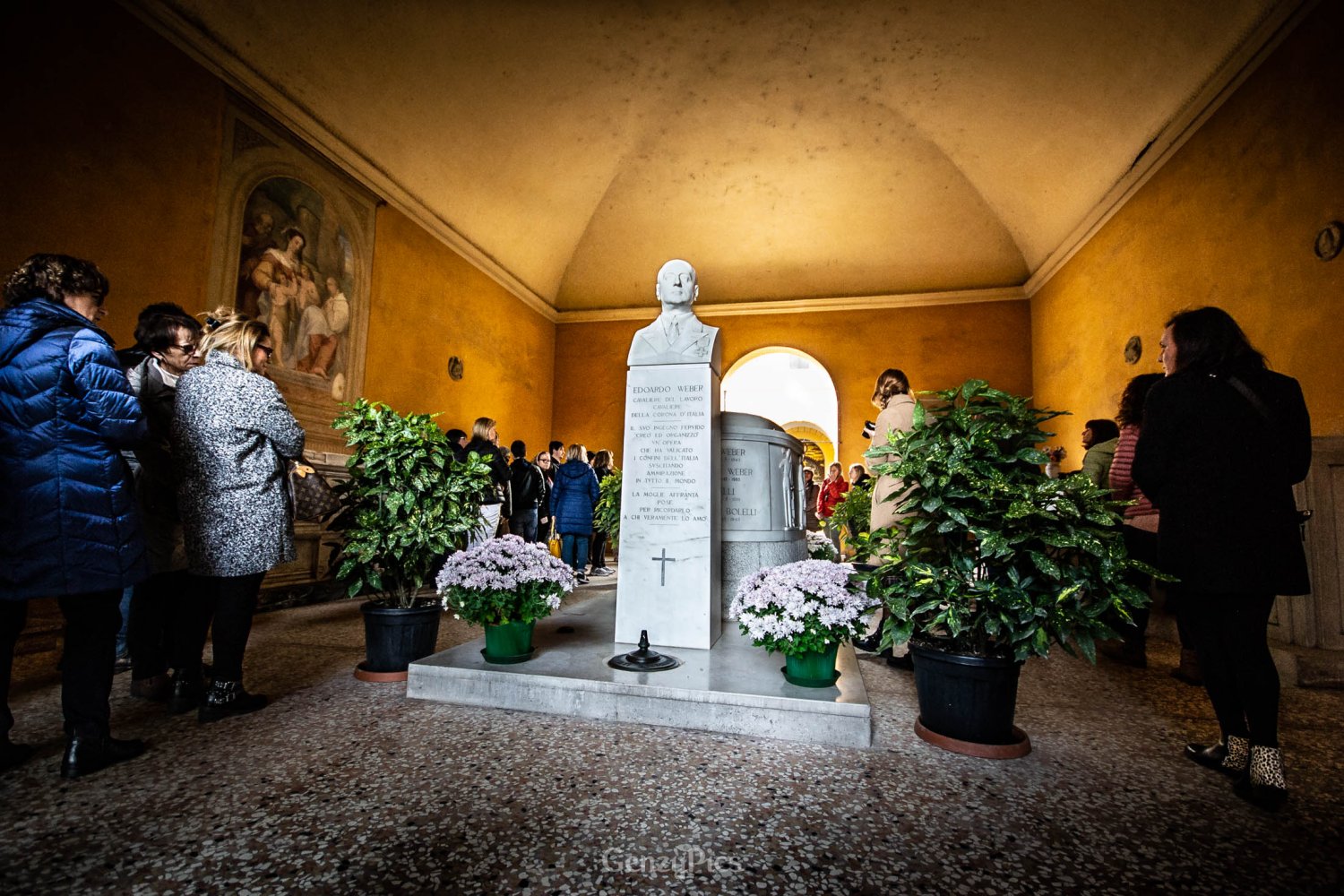 Uno degli aspetti che trovo più significativi e commoventi di questo eccezionale monumento, considerato a ragione uno dei capolavori della Certosa di Bologna, è che il corpo di Weber, nonostante le ricerche, non fu mai ritrovato e quindi non riposa qui. La moglie, deceduta nel 1985, giace qui senza di lui. In vita, non ha mai potuto avere la consolazione di seppellire i resti dell'amato consorte nel monumento funebre a lui dedicato. Spero che nell'Aldilà le loro anime abbiano potuto riunirsi in un eterno abbraccio.