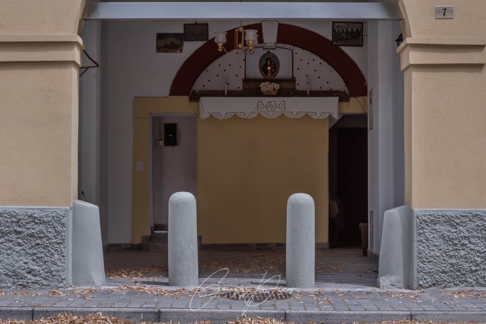 Descrizione: l'effigie della Madonna con Bambino è collocata nella loggia di una palazzina un tempo adibita ad osteria e stazione di posta, storicamente denominata "Usarî vecia". Per questa ragione ci siamo permessi di denominarla "Madonna dell'Osteria Vecchia".