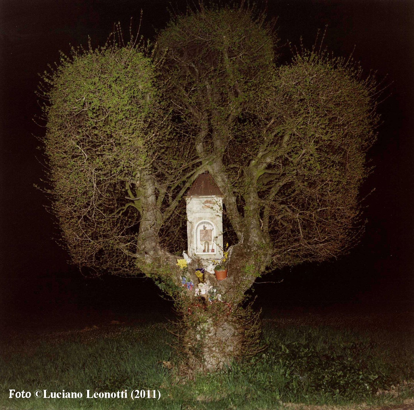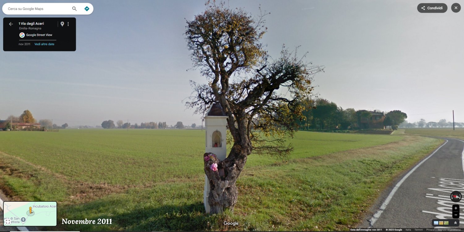 Una lettrice della nostra pagina Facebook ci segnala inoltre che anche a Concordia Sulla Secchia (MO) esisteva una struttura del genere, della quale oggi è rimasta solo l'edicola in quanto l'albero (probabilmente un acero campestre) si è seccato.