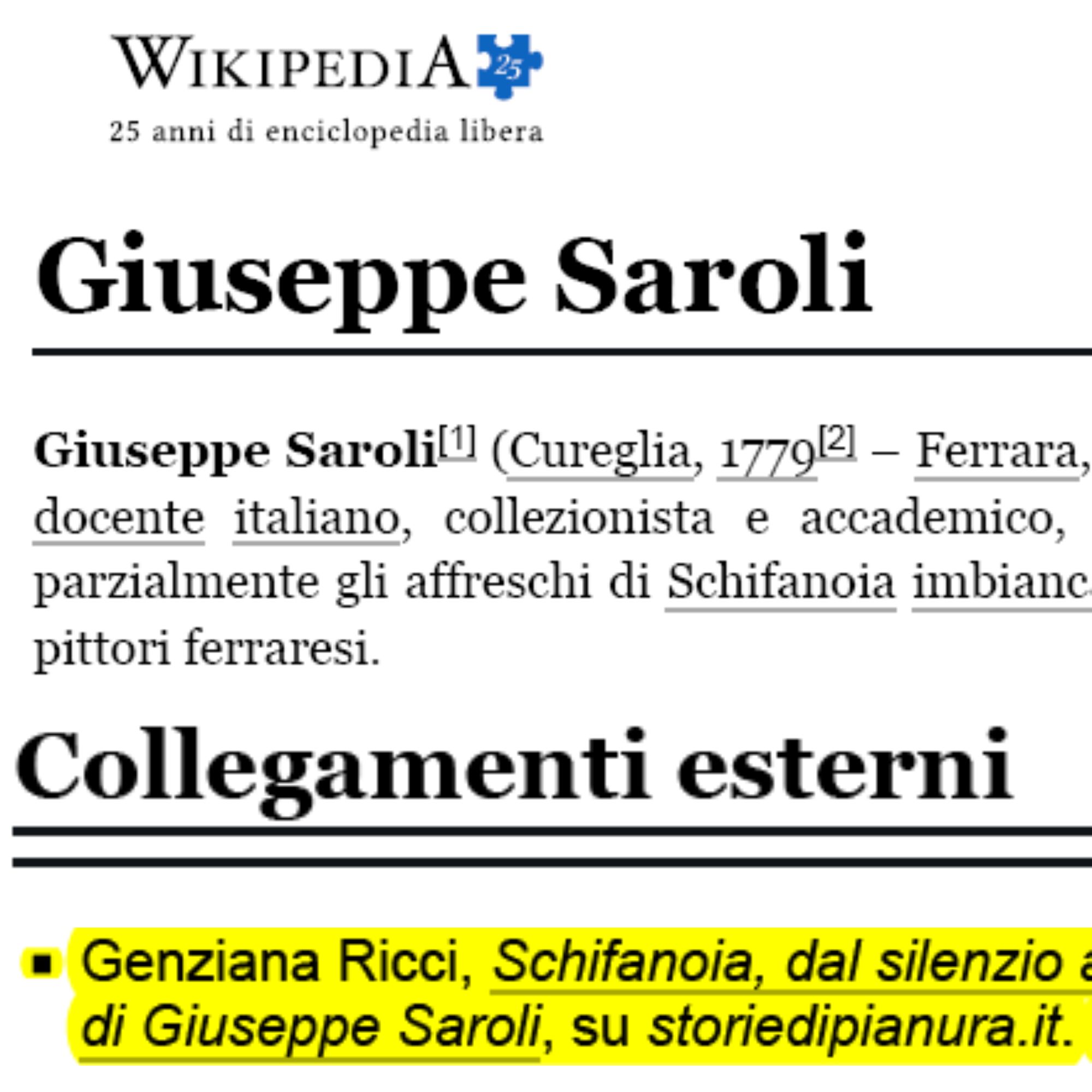 Wikipedia - Biografia Giuseppe Saroli - citazione articolo come fonte