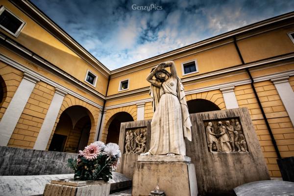 Descrizione: il monumento funebre è una delle opere più esemplificative della predilezione per il classicismo novecentista dell'artista. L'opera si caratterizza infatti per la bellezza delle forme, l'armonia delle proporzioni, la fedeltà alla tradizione classica ma reinterpretata dal punto di vista stilistico. La Notte, avvolta da un velo pesante, sembra praticamente sorgere, con la sua imponenza, al centro dell'opera, con le braccia innalzate al di sopra del capo reclinato ed il ginocchio destro sensualmente fuori dalla veste. La sua gestualità corporea pare suggerire al visitatore sia una certa autorità sul luogo di riposo del defunto, che la protezione di chi è sepolto al di sotto, come se si dovesse passare prima attraverso di Lei per interloquirci.