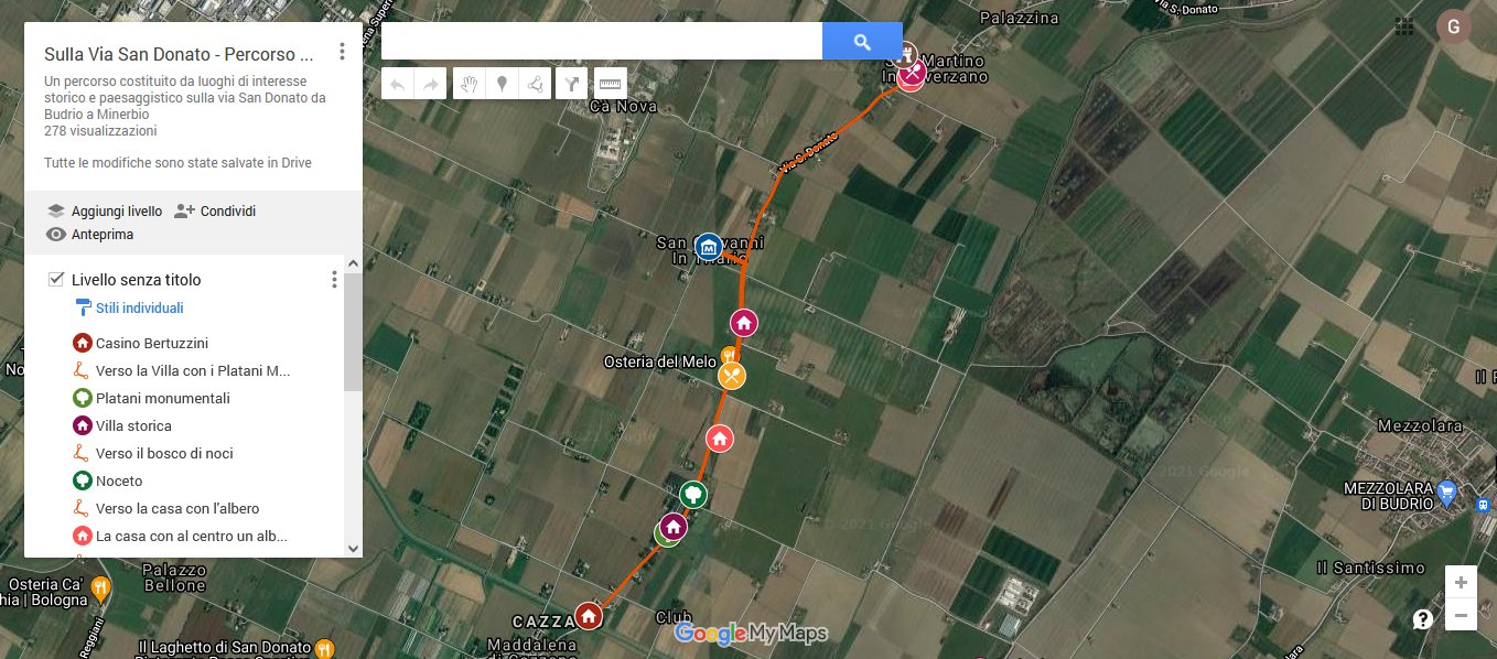 Un percorso costituito da luoghi di interesse storico e paesaggistico sulla via San Donato da Budrio a Minerbio.