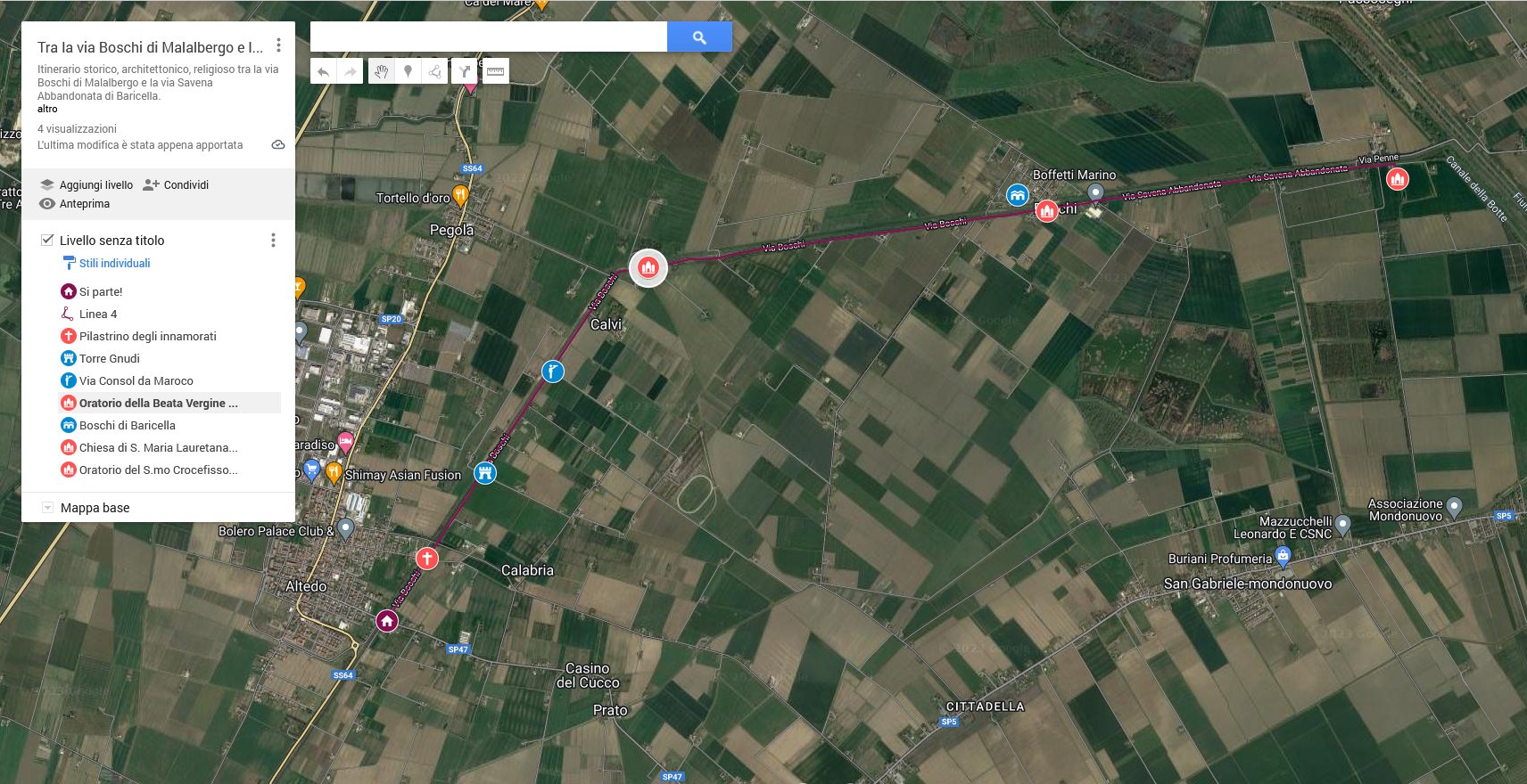 Itinerario storico, architettonico, religioso tra la via Boschi di Malalbergo e la via Savena Abbandonata di Baricella.