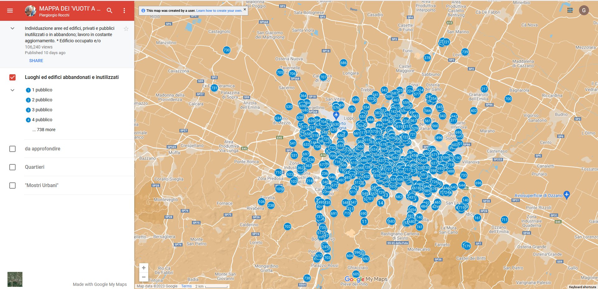 Mappa dei 'Vuoti' a Bologna