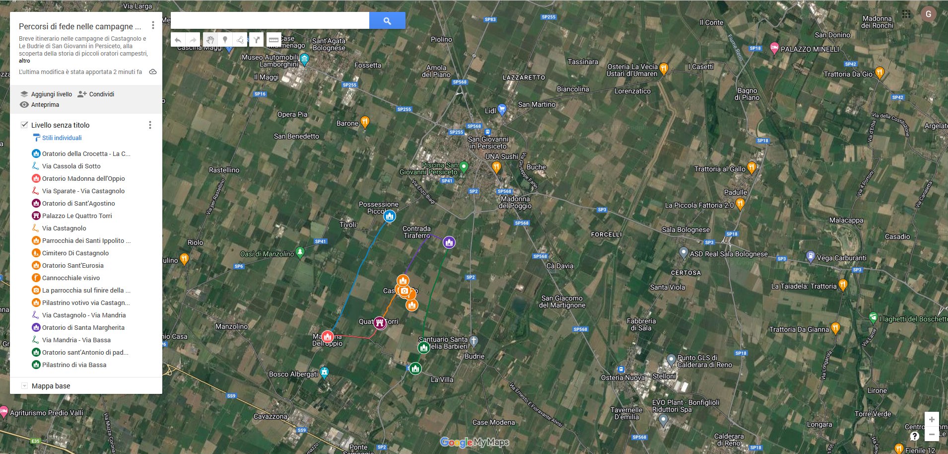 Breve itinerario nelle campagne di Castagnolo e Le Budrie di San Giovanni in Persiceto, alla scoperta della storia di piccoli oratori campestri, pilastrini e parrocchie.