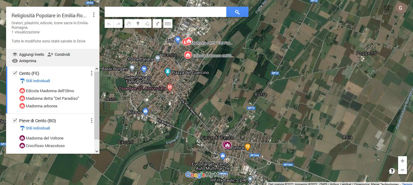 Nella mappa verranno illustrate le 40 chiese di Cento (anche quelle non più esistenti) ed altri luoghi curiosi. La mappa è in fase di aggiornamento, poiché le diverse tappe del percorso verranno scoperte attraverso più incontri nel corso del tempo.
