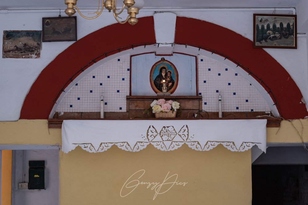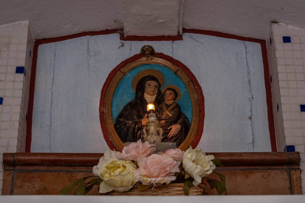 L'immagine è posizionata su un altarino rialzato, al centro di una "lunetta" ricoperta di piastrelle bianche e blu, con due o tre lumi sempre accesi nelle ore notturne.