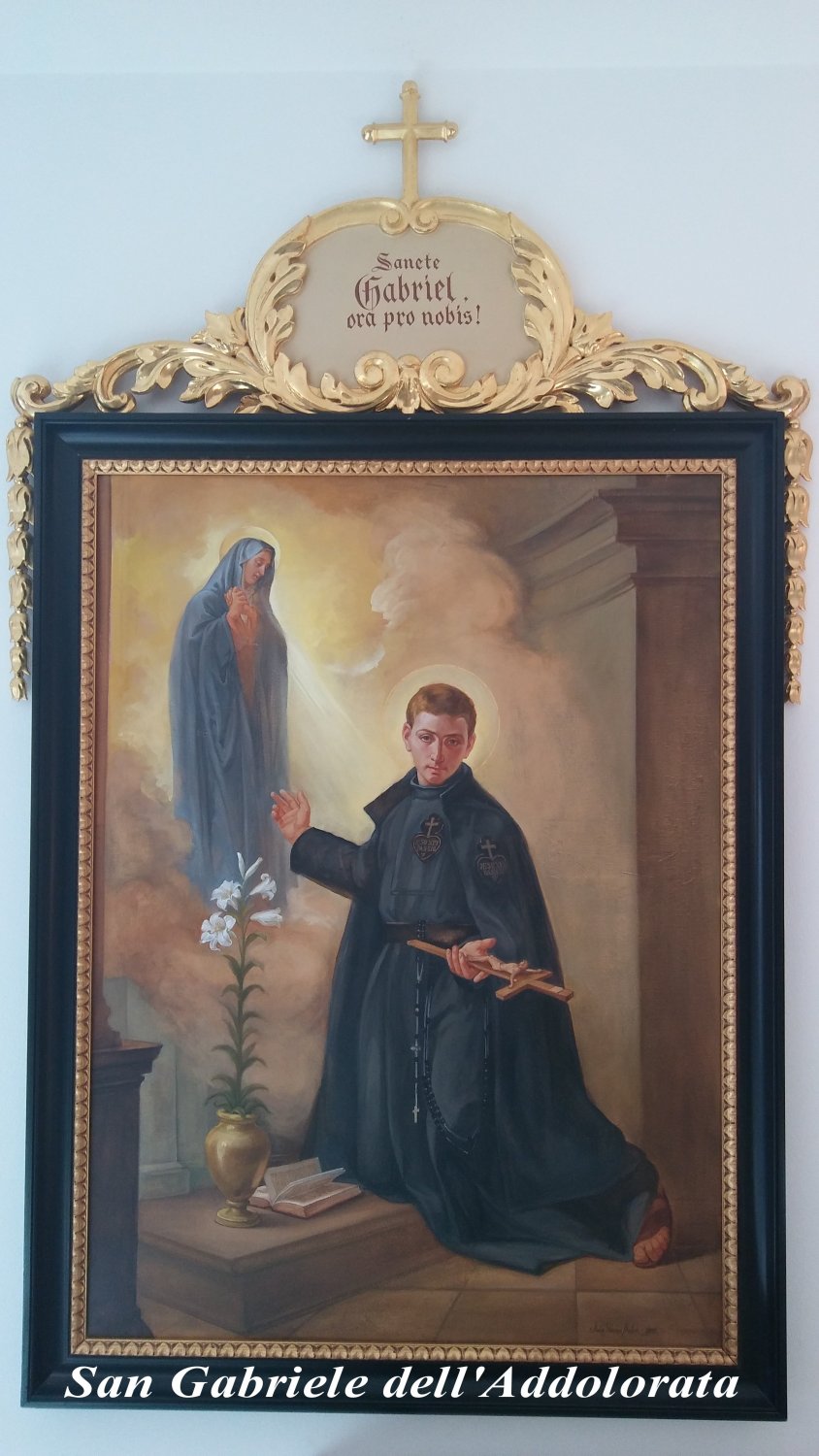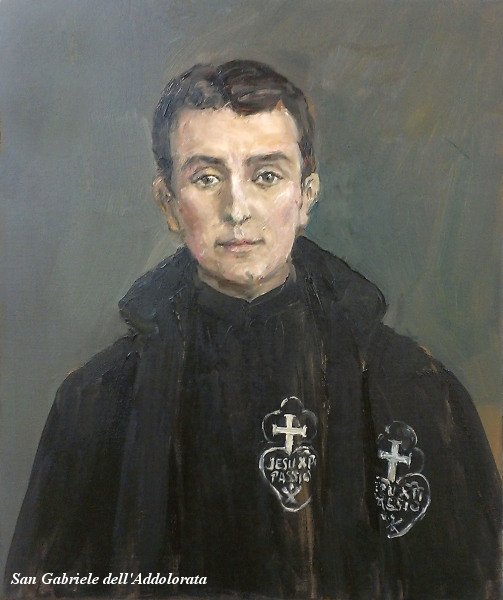 Gabriele dell'Addolorata, al secolo Francesco Possenti (Assisi, 1º marzo 1838 – Isola del Gran Sasso d'Italia, 27 febbraio 1862), è stato un religioso e mistico italiano della Congregazione della Passione di Gesù Cristo (il simbolo del cuore che la statuina porta sul petto riconduce proprio a questo istituto religioso). Proclamato santo nel 1920 da papa Benedetto XV, la sua memoria liturgica è celebrata il 27 febbraio o il giorno seguente nella messa tridentina. È patrono della regione Abruzzo, della Gioventù cattolica italiana e dei comuni di Martinsicuro (TE), Civitanova Marche (MC) e Bovolenta (PD).