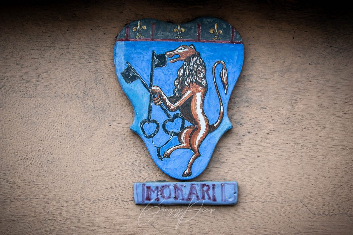 Cammino lungo la Via Provinciale Poggio Renatico, in direzione San Giorgio di Piano, imbracciando la mia macchina fotografica. Non ho ancora finito di fare indagini ed osservazioni lungo questa strada, che a qualsiasi visitatore attento e non frettoloso potrebbe riservare non pochi motivi di interesse storico. Ad un certo punto, mi blocco poco dopo avere sorpassato un villino di colore rosa all'altezza del civico 18. Torno sui miei passi ed osservo lo stemma esposto sul pilastrino vicino al cancello, identico a quello che si trova appena sotto una delle finestre del piano superiore: su un fondo di colore blu, spicca un leone dal bel manto marrone che tiene tra le zampe due chiavi. Sotto, è riportato il cognome Monari.