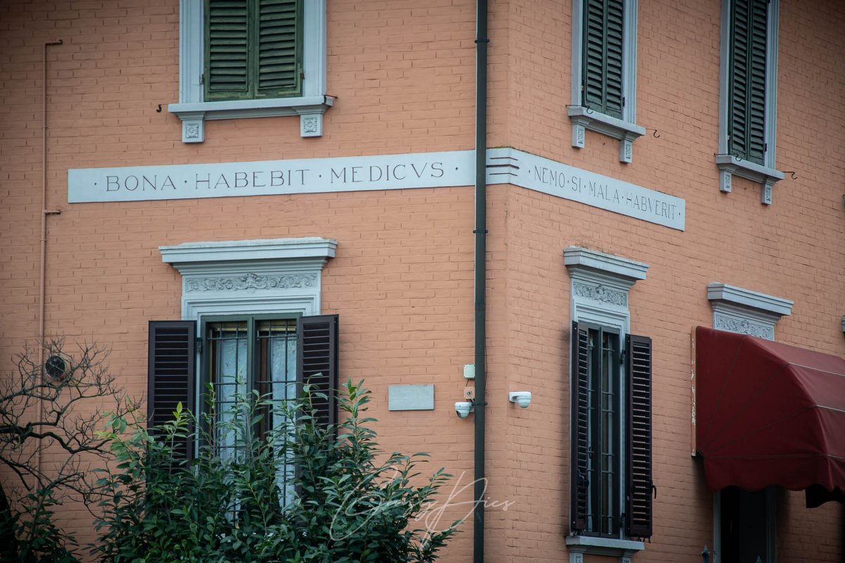 Qualche buon osservatore la noterà percorrendo la Provinciale Poggio Renatico, arrivando a San Giorgio di Piano, all'altezza dell'incrocio per Bentivoglio. Di un bel colore rosa, forse costruita tra la fine dell'800 e l'inizio del '900, questa palazzina si trova in via XX Settembre e sulle pareti esterne dei lati est e nord è possibile leggere una frase in latino: "BONA HABEBIT MEDICUS NEMO SI MALA HABUERIT", che significa "Il medico è contento quando i pazienti stanno bene".